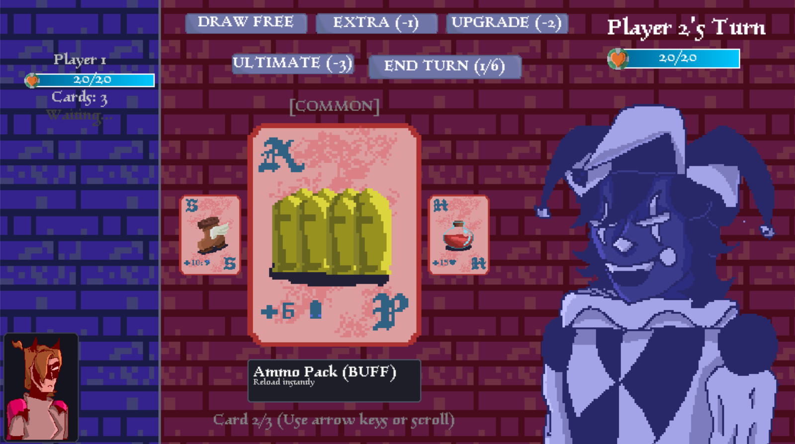 Token Wars is a fast-paced PvP game that combines the strategy of deck building with a classic shooter. Players have to strategically spend Life Tokens to draw powerful cards to gain an edge in timed shooter battles. There is a maximum of 3 rounds, each consisting of card drawing and shooter. Either kill the opponent in the shooter or have more Life Tokens at the end!